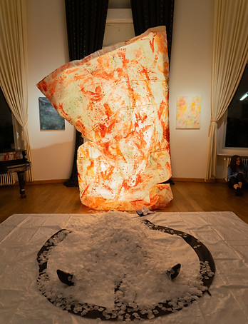 Große luminous Wombs: second-skin-sculptures, Malereien